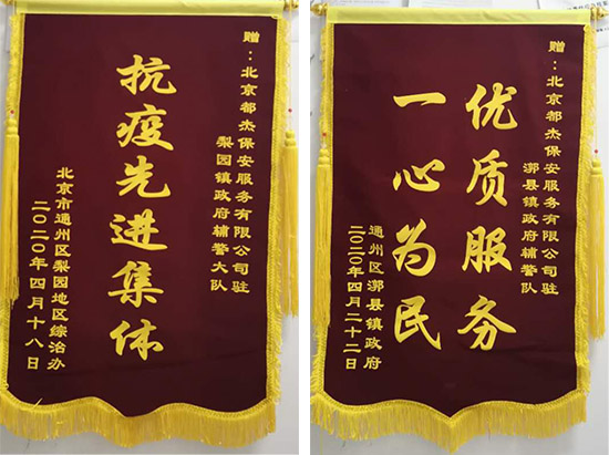 自疫情爆發(fā)以來,都杰公司從公安輔警、檢查站輔警、交通輔警各類輔警;到地鐵安檢員、高鐵安檢員;同時(shí)還有在第一線參與指定隔離地點(diǎn)的臨時(shí)勤務(wù)保安員等各個(gè)崗位,他們嚴(yán)陣以待,巡查排查,他們淡然前行,從不言累;嚴(yán)控把關(guān),他們執(zhí)著堅(jiān)守,從不言歸;維護(hù)疫期各方秩序,他們迎難而上,決不后退。他們義務(wù)反顧地投入到抗擊新冠肺炎的斗爭中,積極協(xié)助各級政府、公安機(jī)關(guān)及有關(guān)部門做好疫情防控工作,用使命和擔(dān)當(dāng)筑牢防疫安全屏障。被北京市公安局通州分局反恐怖和特巡警支隊(duì)授予“優(yōu)秀團(tuán)隊(duì)”榮譽(yù)稱號,被北京市通州區(qū)梨園地區(qū)綜治辦授予“抗疫先進(jìn)集體”榮譽(yù)稱號、收到通州區(qū)漷縣鎮(zhèn)政府授予的“優(yōu)質(zhì)服務(wù)、一心為民”的錦旗等榮譽(yù),得到甲方單位的認(rèn)可及肯定。在得到甲方肯定的同時(shí),都杰人也可以驕傲的說都杰人用自己的專業(yè)取得了這場戰(zhàn)“疫”的階段性勝利,且都杰人沒有一人感染。